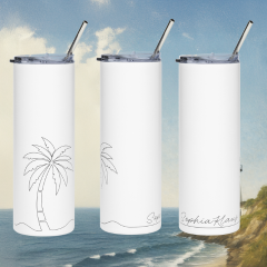 A minimalist line-art series inspired by the rhythm of the sea, effortless travel, and life lived under the sun. Each stainless steel tumbler captures a different moment of the coastal journey — from setting sail to unwinding by the waves. Designed for the modern traveler, every piece pairs simplicity with personalization, making it the perfect companion for your next voyage.