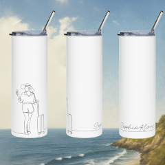 A minimalist line-art series inspired by the rhythm of the sea, effortless travel, and life lived under the sun. Each stainless steel tumbler captures a different moment of the coastal journey — from setting sail to unwinding by the waves. Designed for the modern traveler, every piece pairs simplicity with personalization, making it the perfect companion for your next voyage.