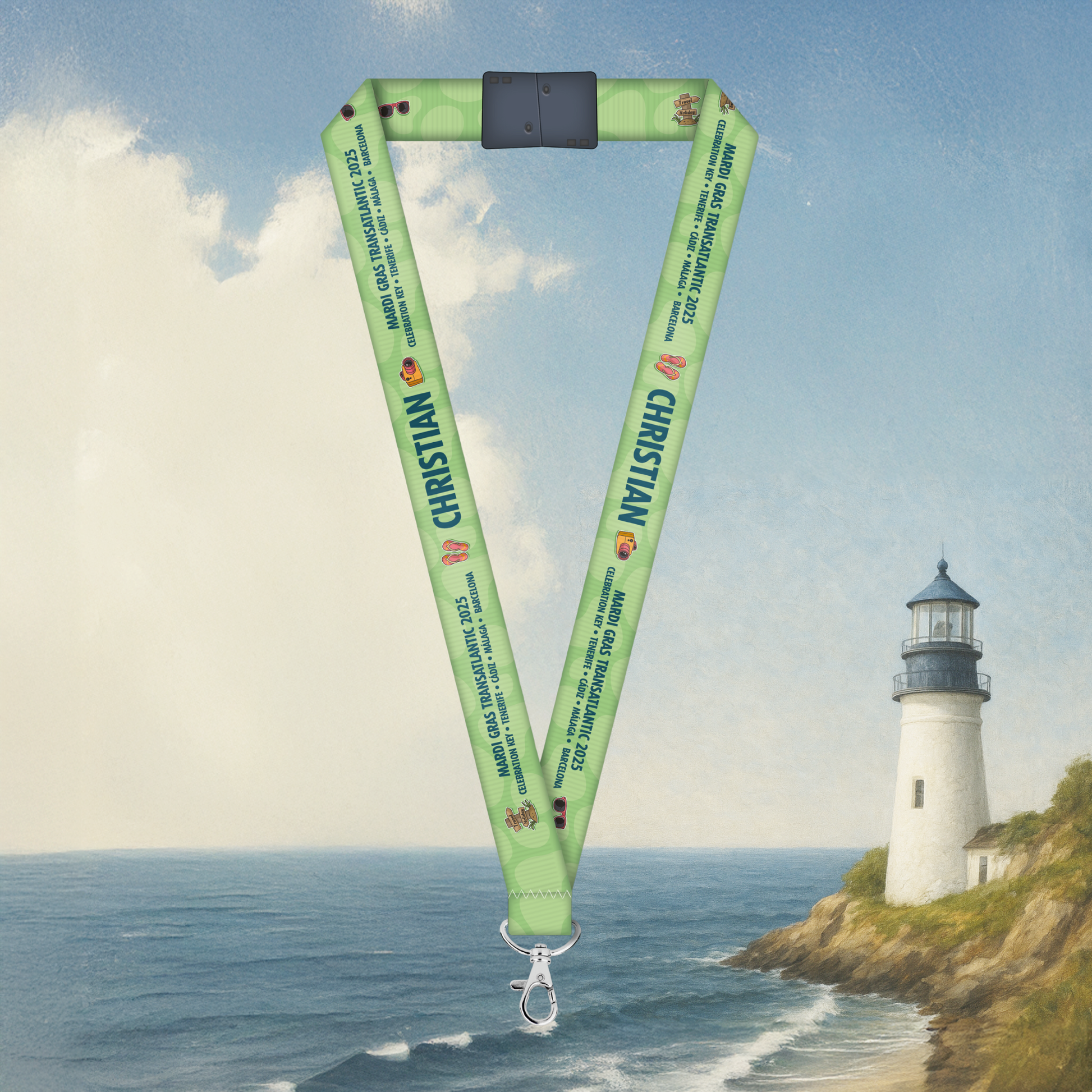 Bring a touch of island flair to your next voyage with the Tropical Wave Lanyard. Featuring vibrant green tones and playful cruise icons, it’s designed to keep your essentials close while showing off your personal cruise style. Whether you’re boarding, exploring ports, or relaxing on deck, this lanyard is your perfect cruise companion.